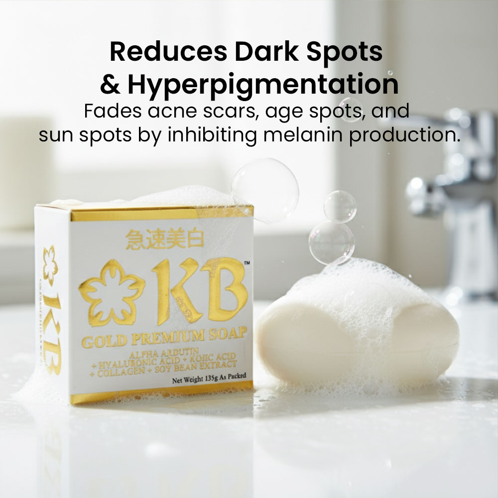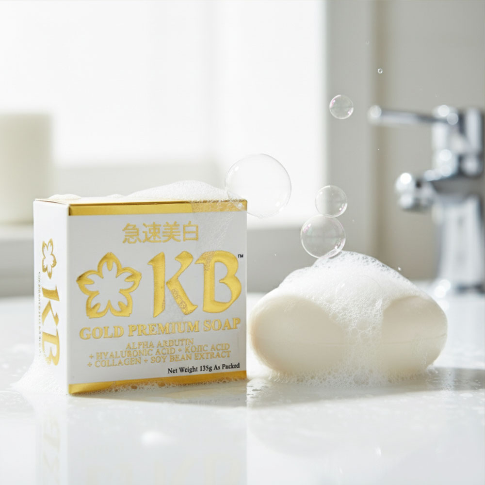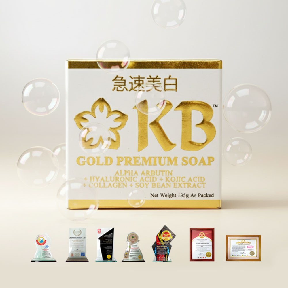 KB Gold Premium Soap is formulated with the right amount of kojic acid as second whitening agent only to alpha-arbutin to prevent unnecessary skin pigmentation and irritation.