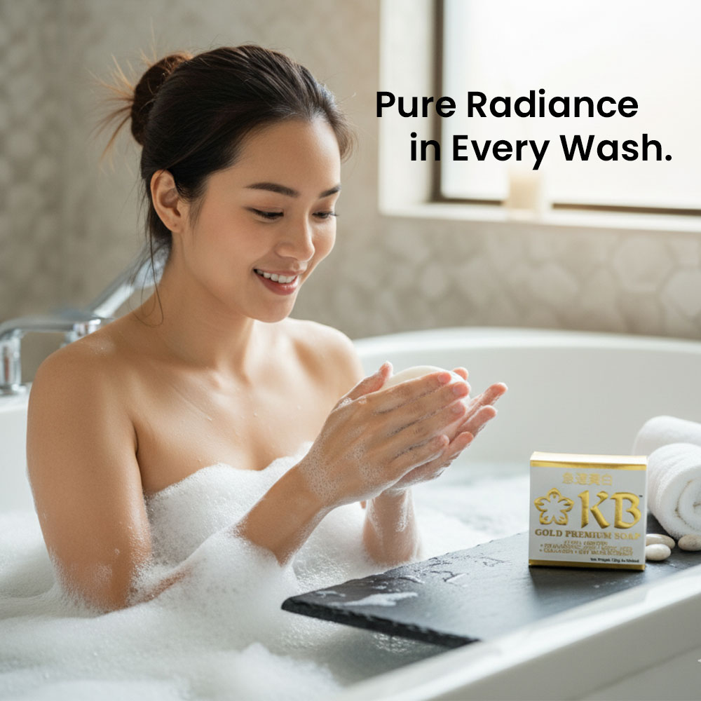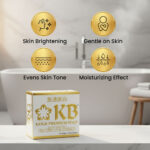 With regular use, KB Gold Premium Whitening Soap can help brighten your skin, reduce dark spots, and promote an even and radiant complexion.