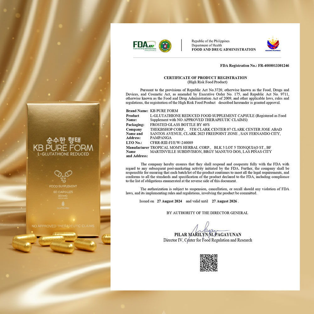 Yes, KB Pure Form L-Glutathione Reduced is FDA registered and meets all the regulatory standards for safety and quality, ensuring that it is safe for consumption.