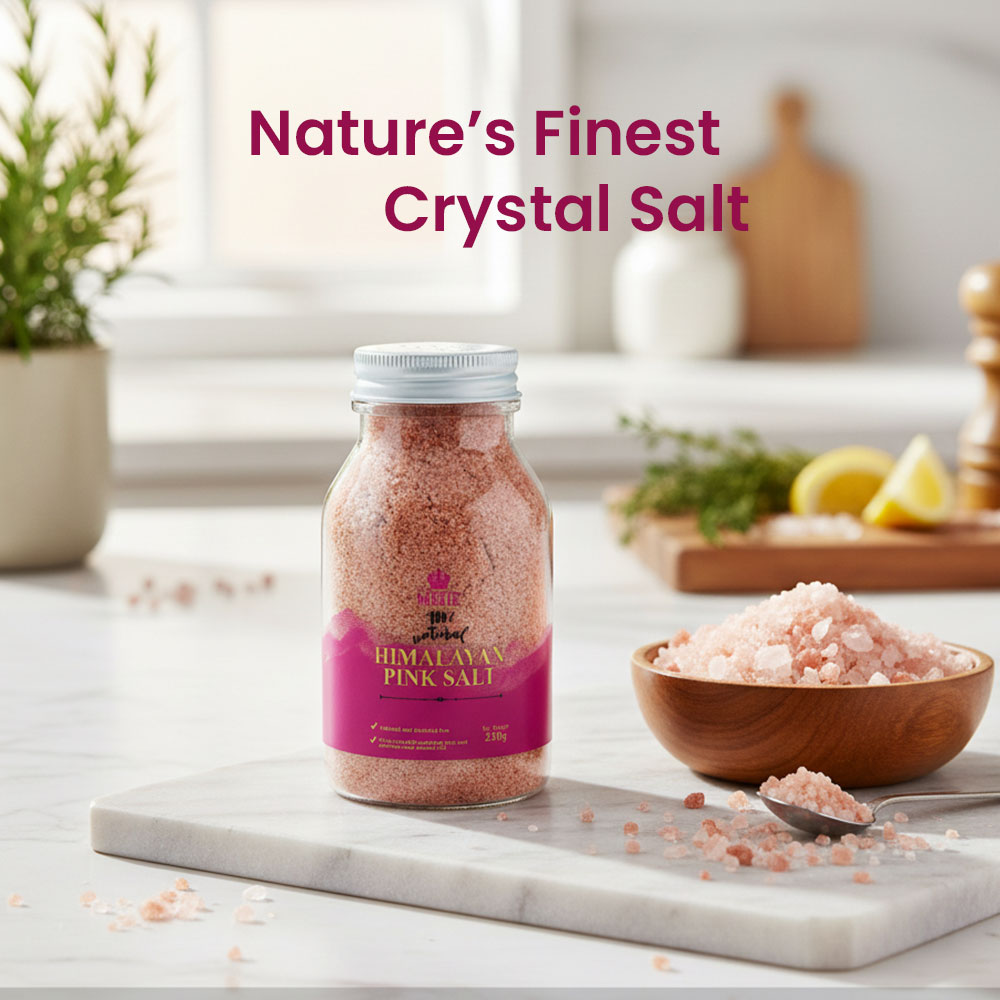Himalayan salt is a natural rock salt mined from the ancient sea beds of the Himalayan mountains, mainly in Pakistan. It is known for its distinct pink color — a result of trace minerals like iron, magnesium, calcium, and potassium that make it purer and more nutritious than regular table salt.