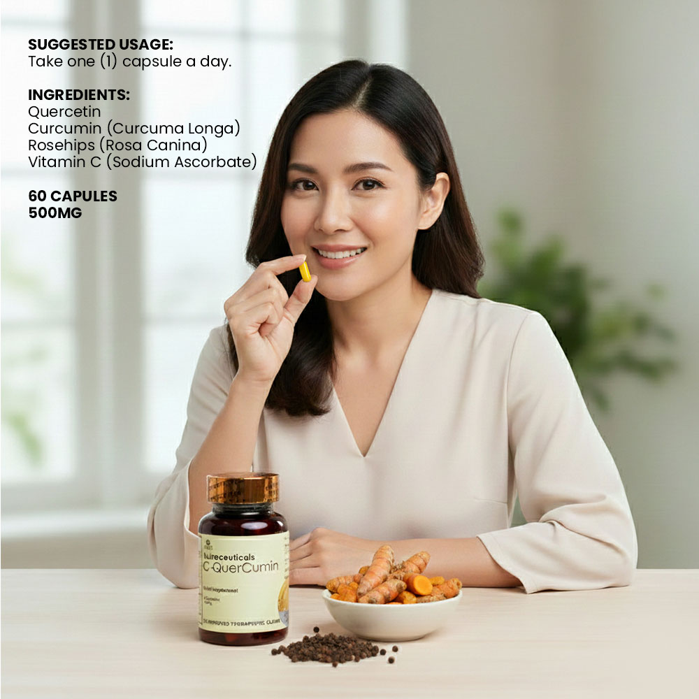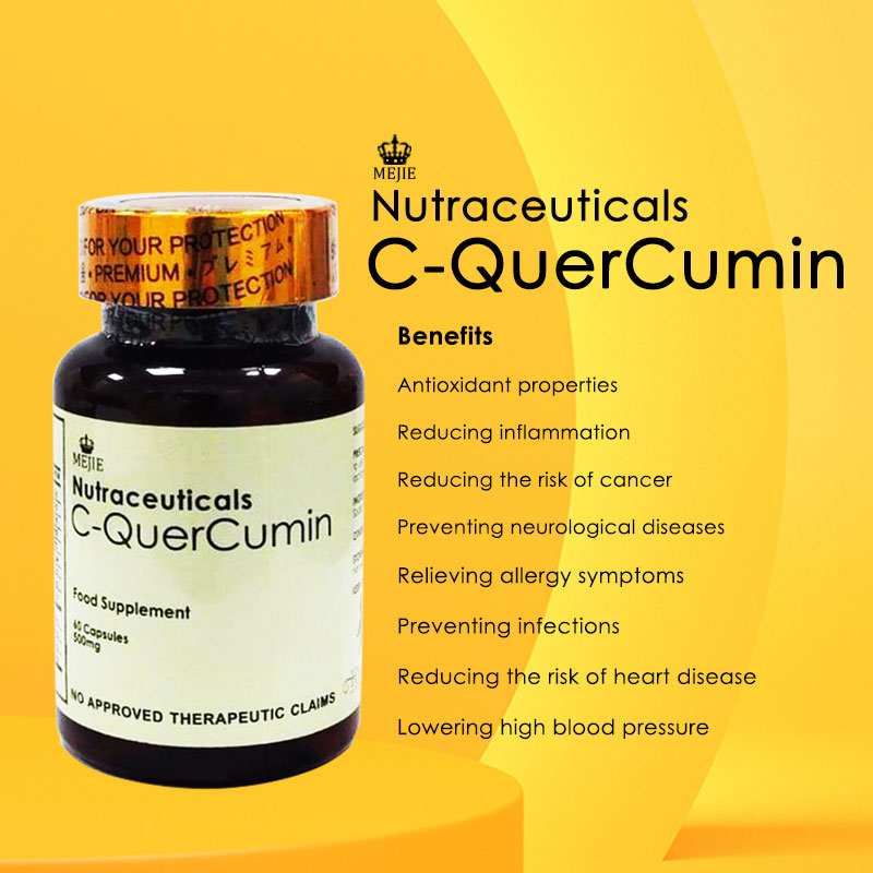 MEJIE Nutraceuticals C-QuerCumin is a dietary supplement that combines two powerful compounds: curcumin, derived from turmeric, and vitamin C. This formulation is designed to provide various health benefits due to the synergistic effects of its ingredients.