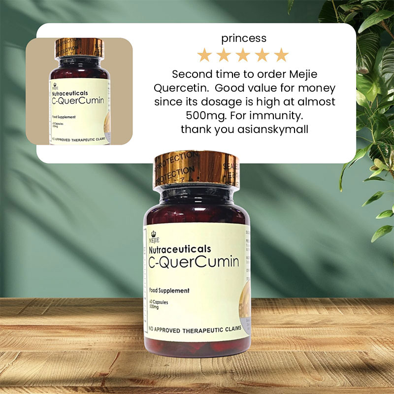 MEJIE C‑QuerCumin is a natural health supplement that combines Curcumin (from Turmeric), Quercetin, and Rosehip Extract to provide powerful antioxidant, anti-inflammatory, and immune system support in one convenient capsule.