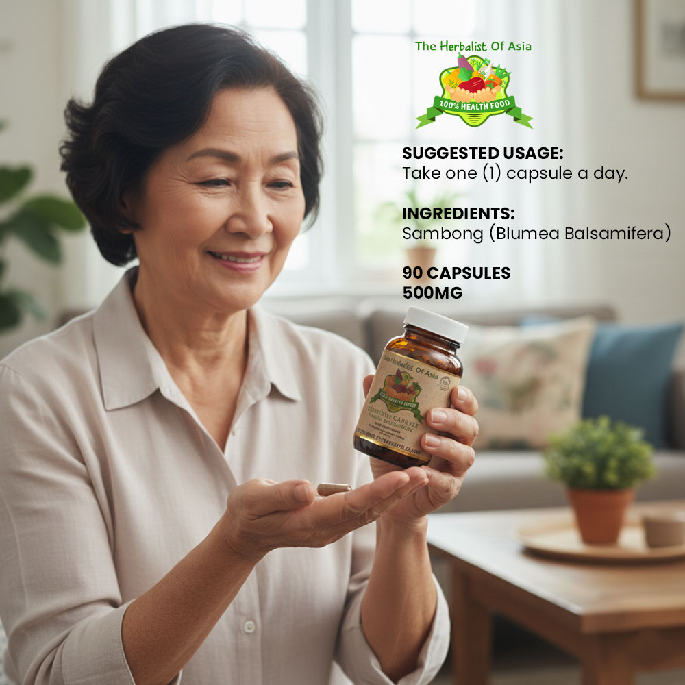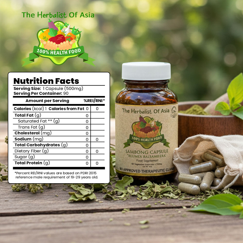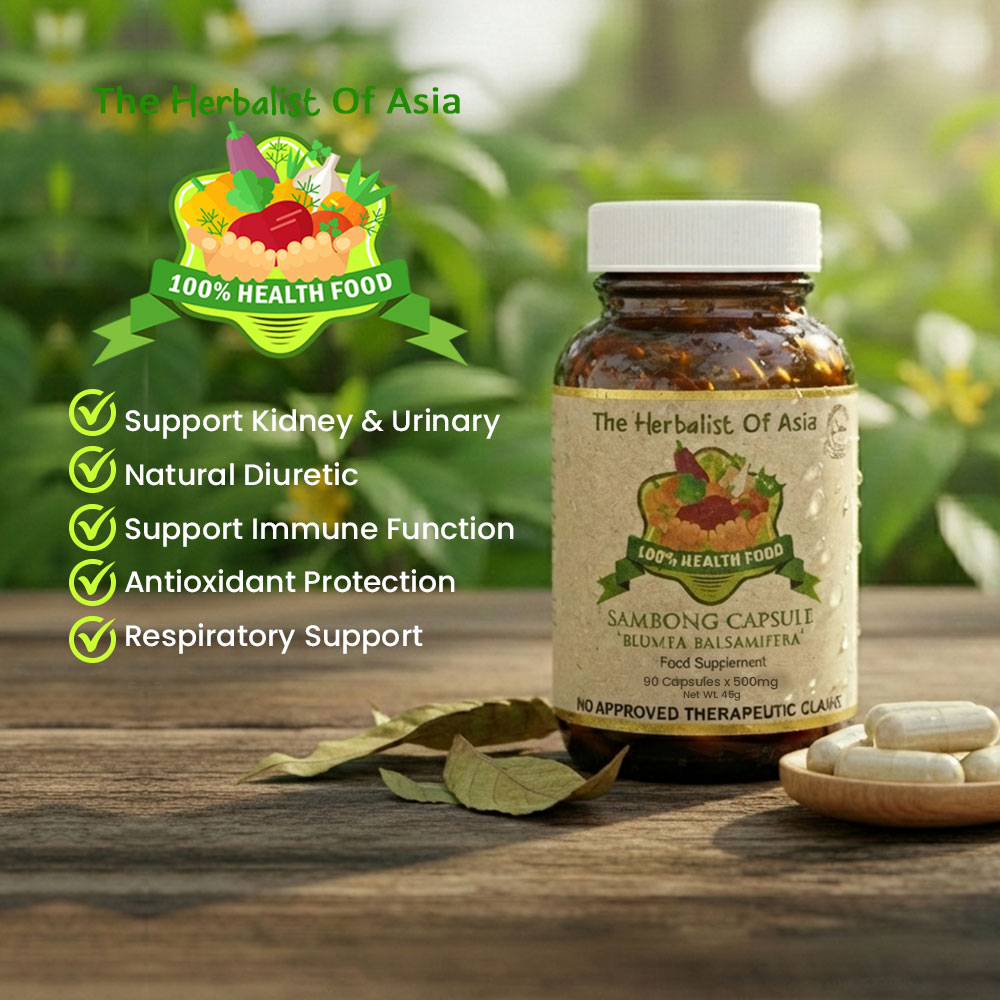 The Herbalist of Asia’s Sambong Capsule is made from the Sambong plant (Blumea balsamifera), which is widely used in Philippine and Southeast Asian traditional medicine for its potential benefits in supporting kidney health, urinary function, and respiratory wellness. Sambong is particularly known for its diuretic properties, which may help in managing certain kidney and urinary conditions.