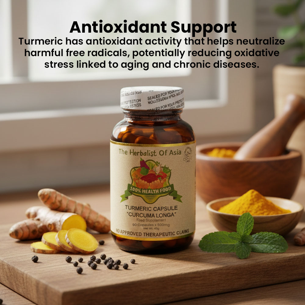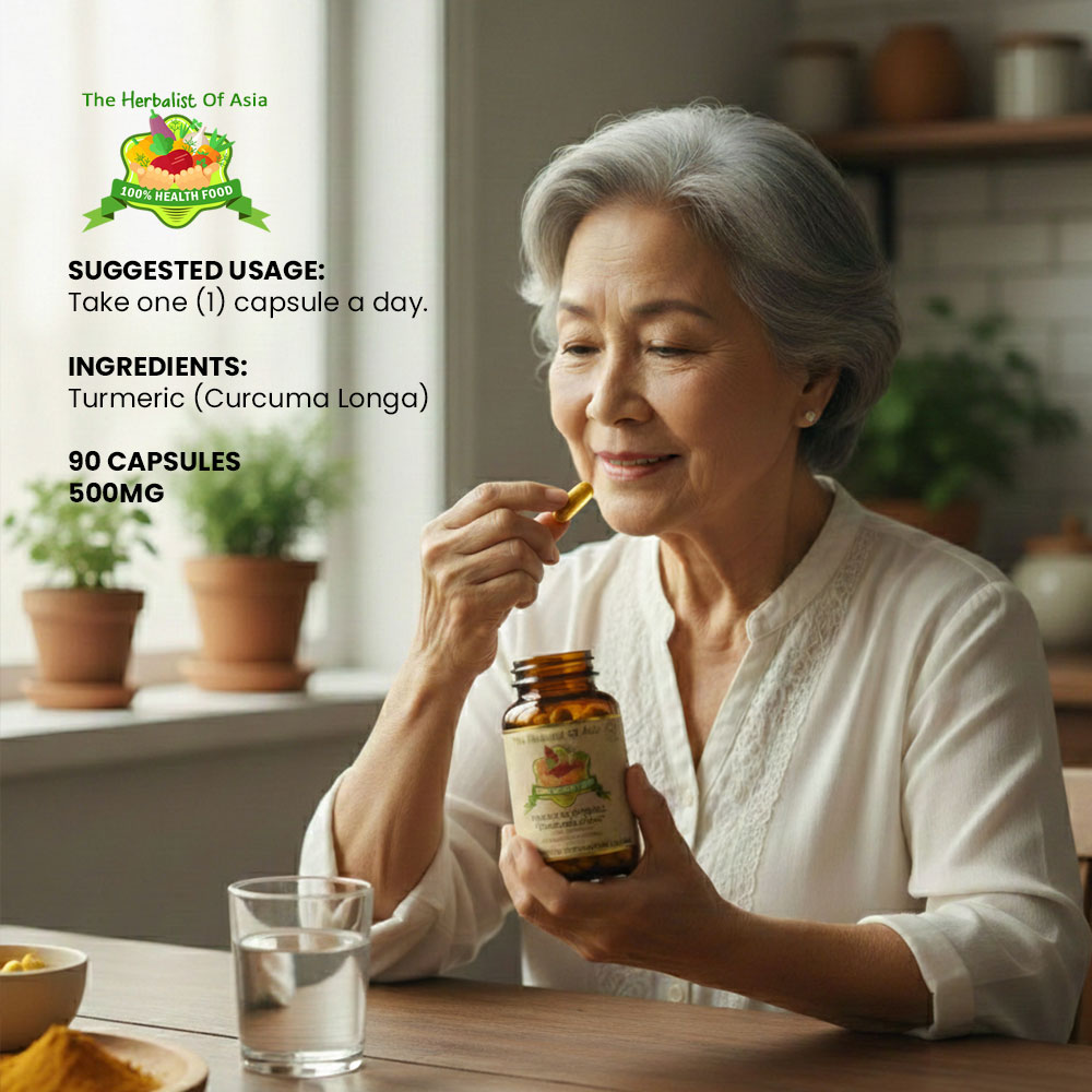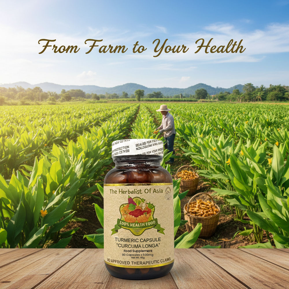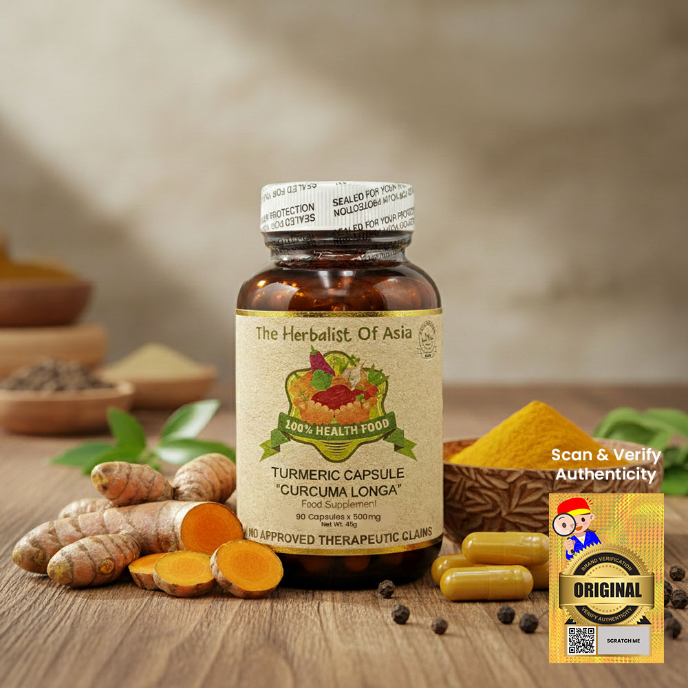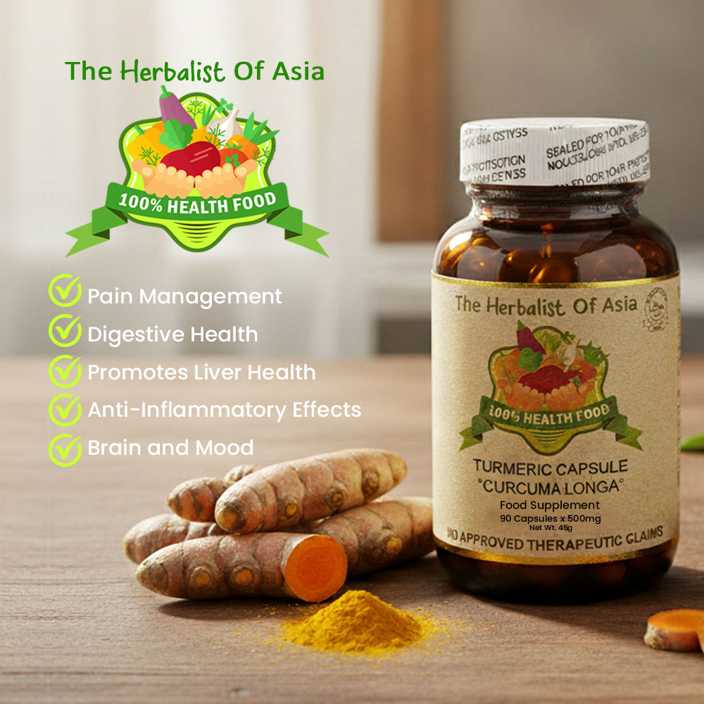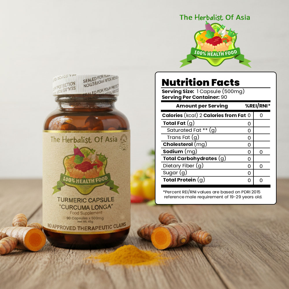 The Herbalist of Asia’s Turmeric Capsule is derived from Curcuma longa, a plant known for its rhizome, which is commonly used as a spice and has a long history of use in traditional medicine. Turmeric contains curcumin, a compound that is primarily responsible for its vibrant yellow color and many of its health benefits.